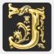 Carré LETTRE MAJUSCULE J INITIALE Sticker en or