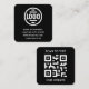 Carte de visite carrée noire moderne et minimaliste avec logo personnalisé et code QR au verso. Cette conception de carte de visite carrée met en vedette votre logo d'entreprise et un code QR personnalisé. Personnalisez le texte avec les informations de votre entreprise, telles que le nom, l'adresse, le numéro de téléphone ou le site web. Le fond noir et la couleur du texte blanc peuvent être modifiés.