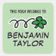 Lucky clover doodle personalized bookplate sticker. This book belongs to labels. Cute bookplate stickers with custom name and green shamrock. Custom background color.