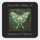 Une plaque carré avec un collage photo numérique d'un gracieux vert pâle, Luna Moth. En haut, "From the Library of", et en bas, le nom du propriétaire du livre. Le haut et le bas sont des modèles, il suffit de taper dans les cases sous personnaliser pour changer ou effacer l'écriture.
