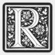 Cette simple lettre "R" est encadrée dans un très joli motif floral noir et blanc.