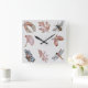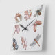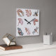 Horloge murale de pépinière avec empreintes de la nature. Pour la crèche ou la salle de jeux. Horloge carré de 10 po x 10 po avec Pinecone, Acorn, Feuille d'érable, Feuille de chêne, Feuille de Ginkgo, Abeille, libellule et Papillon.