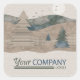 Logo'd holiday sticker for baked treats or toxits with versatile brown, beige, blue, et olive green artwork. Rustic forest scene with faux plaid, leather, and rusted metal textures.