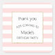 Bande simple rose et blanc avec cadre faux or merci pour l'autocollant de parti. OEuvres pour baby showers, mariages, anniversaires, etc. Voir collection pour les coordonnées.