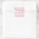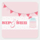 Un autocollant pour la gorgée et la vue avec l'illustration d'un pot de mason de limonade rose à droite. Illustration de l'enrobage rose en haut. Le texte est rose. Recherchez les invitations à la fête de jumelage chez Jill's Paperie.