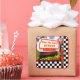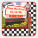 Un autocollant Carré pour sauvegarder la date avec une image d'un panneau de dîner les années 50 retro, une horloge rouge pour diner et une serveur de les années 50 vintage sur un damier noir et blanc. Voir les invitations "les années 50 Retro Diner" et "les années 50 Retro Diner Blank Sign", "les années 50 Retro Diner Merci", enveloppe, sacs de faveur, ballotins, étiquettes de faveur, étiquette et autocollants. Voir toute la collection Nifty les années 50 Sticker aux INVITATIONS| Section Stickers & Étiquettes.