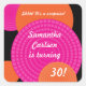 Des cercles en rose et orange couleur bonbon forment des formes globulaires contre un riche arrière - plan noir. Le texte customisé se trouve dans les formes, dont certaines ont un motif radial. Utilisez comme scellés d'enveloppe ou sur des sacs de faveur pour n'importe quel anniversaire d'étape. Idéal aussi bien pour les ados que pour les adultes. Disponible en couleurs alternatives avec des produits correspondants.