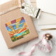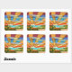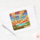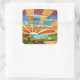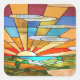 sticker carré avec l'image d'une scène pastorale colorée en vitrail Art Déco, de collines ondulées et de soleil éclatant. Voir confettis assortis, sac de faveur, étiquette de faveur et papier d'emballage. Voir l'ensemble de la collection Sticker Roaring 20s dans les INVITES | Section Stickers & Étiquettes.