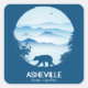 Asheville, Carolina Nord design autocollant avec une silhouette d'ours noir et les Blue Ridge Mountains dans l'arrière - plan.