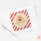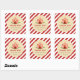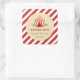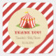sticker carré pour baby shower faveur avec design de tente cirque et combinaison de couleurs rouges.