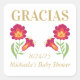 Un beau style de fiesta florale rouge merci autocollant. Cet autocollant "gracias" présente un design de fleurs de fêtes rouges et des lettres de couleur or. Idéal pour un baby shower à thème mexicain. Et peut être utilisé pour un garçon, une fille, ou une douche sans sexe. Cet autocollant a de la place pour la date et le nom de votre jour spécial. Customisez facilement le libellé en sélectionnant le bouton "personnaliser".