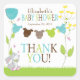 Mignons garçons autocollant baby shower avec une ligne de vêtements Sweet Baby avec un mignon lapin et des lignes de vêtements avec des costumes de bébé en bleu, vert citron et marron accroché d'une fleur bleue et jaune. Un autocollant parfait pour les faveurs pour bébés ou les enveloppes d'invitation! Un autocollant parfait pour votre baby shower garçon ! Des invitations, des timbres-poste et des notes de remerciement sont disponibles dans notre boutique à l'adresse www.celebrateitinvites.com. ©Erin Bradley Studios