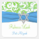 Carré Sticker Bat mitzvah bleu, blanc, vert Damask
