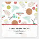 Un autocollant d'adresse mettant en vedette un motif à thème artisanal. Le design se compose d'une boule de fil avec aiguilles de tricot, boutons, ciseaux, une bouteille de parties scintillant, une bouteille de colle, ruban, et un pistolet à colle chaude. Le design a une palette de couleurs rétro orange, jaune, rouge et bleu/turquoise.