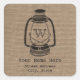 Un autocollant représentant une illustration toute en noir d'une lanterne à huile de style camping au-dessus d'un arrière - plan inspiré par un burlap. Personnalisez avec votre adresse et votre monogramme. Recherchez les articles correspondants chez Jill's Paperie.