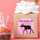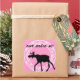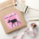Jolie silohuette noire d'orignal contre un arrière - plan rose vif et encerclée dans un cercle de style vintage. Les mots "Yom Huledet Sameach" (Joyeux anniversaire en hébreu) correspondent à la silohuette noire.