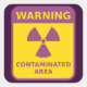 Avertissement - Zone contaminée - lettrage jaune et violet avec symbole d'avertissement de radiation.