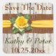 Ce mariage rustique carré de 1,5 po sauvez l'autocollant de date et/ou le sceau d'enveloppe en couleurs de vert, jaune, marron et blanc cassé a des images d'une rose jaune avec des feuilles verts sur elle avec un ruban en satin jaune IMPRIMÉ, et un bracelet FAUX avec un arrière - plan en bois de grange peint vieilli qui correspond au faire-part de mariage ci-dessous. Idéal pour un printemps rustique, un été ou un mariage de automne, ou pour un mariage à thème marron et jaune, un thème jaune et vert, ou un mariage de grange chic et décontracté. ****VEUILLEZ NOTER, si vous changez vous-même la forme de l'autocollant, ou si vous changez les polices, ou la taille de la police, une partie de la conception et/ou du texte peut être coupée. Tout va s'imprimer comme vous le voyez sur votre écran. Je ne verrai pas les changements que vous faites, et Zazzle ne corrigera rien (fautes de frappe, mauvais alignement, etc.). Le texte est entièrement personnalisable. Vous pouvez sélectionner un autocollant de 1,5 po ou 3 po. Si vous avez besoin d'aide pour ce produit, envoyez-moi un courriel AVANT de passer votre commande. Si vous avez besoin d'autres articles correspondants, veuillez envoyer votre demande par courriel à niteowlstudio@gmail.com.
