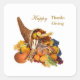 Un autocollant d'action de grâce avec Cornucopia plein de légumes et de fruits.