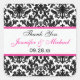 Carré Sticker de mariage 1,5" Black White Rose Damask