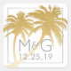 Palmiers d'or avec monogramme et date mariage. Cliquez sur "customiser plus loin" pour essayer différentes polices, déplacer l'illustration et choisir la couleur arrière - plan dont vous avez besoin pour correspondre à votre mariage ou à votre fête.