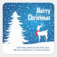 Un renne portant une écharpe rouge s'arrête dans une tempête de neige pour réfléchir sur un arbre solitaire sur cet autocollant. Idéal pour les scellés d'enveloppe ou l'ajout à des cadeaux de vacances. Disponible avec les produits correspondants. com