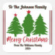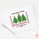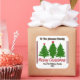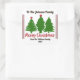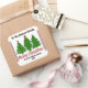 Un autocollant carré délicieux orne un cadeau joliment emballé, avec des arbres verts vibrants et un joyeux message de Noël joyeux. Cet accent coloré ajoute une touche festive, parfaite pour partager l'amour et la fête pendant la période des fêtes.