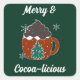 Découvrez l'esprit des vacances avec notre sticker "Merry and Cocoa-licious" (en anglais) ! Conduit à un arrière - plan vert vif, ce design festif est orné d'une gaie tasse rouge remplie de chocolat chaud à la vapeur, surmontée de marshmallows moelleux. Les couleurs ludiques du rouge, du vert et du blanc captent parfaitement la joie de la saison. Cet autocollant est parfait pour ajouter une touche amusante à votre emballage cadeau de vacances, l'artisanat de cartes de fête ou la décoration de votre maison. Étendre la chaleur et applaudir ce Noël avec un rappel délicieux que c'est toujours un bon moment pour le cacao !