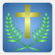 Autocollant de Pâques carré avec croix dorée Palm Sunday et design de palme.