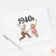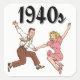 autocollant carré avec "années 1940" inscrit audacieusement sur le dessus et l'image d'un couple en train de danser en dessous. Voir collant vinyle taillé sur mesure, confetti, sac de faveur, étiquette de faveur, étiquette et papier d'emballage. Voir l'ensemble de la collection Sticker Patriotic 40s dans les INVITATIONS | Section Stickers & Étiquettes.