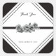 Design moderne élégant noir et blanc affaires merci autocollant décoré avec des fleurs d'aquarelle grise et des bandes noires. Texte personnalisable