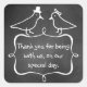 Tableau vintage rustique à l'aspect autocollant, avec des graphiques blancs de mariés mignons et des oiseaux de mariés au-dessus d'une zone de texte encadrée décorative. Le texte personnalisé blanc est prêt à être personnalisé pour votre mariage. Des produits mariages correspondants sont disponibles.