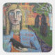 Sticker d'une femme tenant un corbeau avec des corneilles en bouchons veloutés dans l'arrière - plan et texte imbriqué. D'une peinture à l'huile originale d'Alexandra Schaefers.