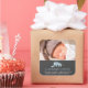 Carré Sticker Faire-part de naissance bébé bleu éléphant