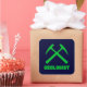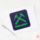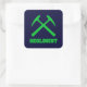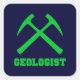 Géologue - autocollant bleu foncé avec lettrage de style collégial vert et marteaux de roche croisés.