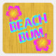 Beach Bum drôle dire en lettres de bois défraîchi en couleur turquoise clair et bleu océan avec un contour jaune sable sur un faux tapis de roseau avec des fleurs d'hibiscus. Cliquez sur Customiser pour ajouter votre nom ou votre message, modifier les couleurs des arrière - plans et plus encore.