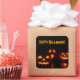 autocollant carré avec une image de jack-o-lanternes d'Halloween avec des grins de ghoulish sur le noir. Un sentiment de vacances personnalisable. Voir les confettis assortis, le étiquette et le papier d'emballage. Voir la collection entière de Stickers Halloween sous la catégorie CARDS & STICKERS dans la section VACANCES.