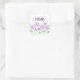 Un autocollant carré avec fleurs lilas et nom. Customisez l'autocollant avec votre nom ou texte spécial, couleur arrière - plan, entre autres options.