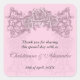 Une bordure supérieure de rose donne un look classique sur cet autocollant mariage rose. Le texte customisé est placé sous les fleurs tandis qu'un filigrane des bannières florales s'imprime verticalement derrière le texte. Utilisez comme enveloppe ou scellés de paquet, une faveur amusante ou utilisez-les pour fermer les sacs de faveur. Disponible en couleurs alternatives avec produits correspondants. com