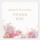 Romantic Spring Pink Floral, un carré merci sticker mariage pour la suite Faire-part de mariage pour un merveilleux mariage à thème bohème. Fleurs de style vintage. Mariage Boho élégant. Couleurs rose et or.