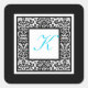 Carré Sticker Monogramme noir, blanc et bleu Damas