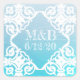 Autocollants Aqua Blue et White Mariage damassé personnalisés Date & Initiales