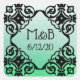 Carré Sticker personnalisé Mariage vert Date & Initiales