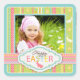 Motif rayé de poussins et lapins sucrés avec un tag 3D look Pâques autocollant photo.