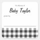 Autocollants de plaque de baby shower en plastique rustique. Aidez un bébé à construire une bibliothèque en donnant un livre comme cadeau au lieu d'une carte. Le plaid noir et blanc est simple, classique et neutre de genre, police et design est rustique moderne. Convient pour un baby shower sans distinction de genre. Personnalisez l'autocollant de la plaque avec l'outil de personnalisation. Découvrez d'autres produits de baby shower disponibles dans la collection Rustic Baby BBQ Black and White Plaid Baby shower.