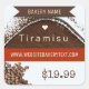 Vous pouvez customiser cet autocollant de boulangerie en ajoutant votre nom de boulangerie, le prix de la tarte, l'adresse et le site Web. Cet autocollant fonctionne bien pour le tiramisu et d'autres desserts au cacao + café.