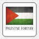 Soutenez la Palestine avec cet auto-collant en forme de carré avec le drapeau palestinien avec les mots Palestine Forever en dessous. Le texte est personnalisable.