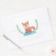 Un autocollant personnalisé pour le petit à étiquette leurs livres et objets. Il est livré avec un mignon petit animal de renard boisé debout parmi un feuille et des baies frisées la bordure de la couronne. Design est un doodle d'aquarelle scannée par Rusty Doodle. Idéal pour les enfants qui aiment les animaux et les créatures boisées et forestières.