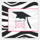 Un autocollant de graduation avec un design "Class of 2012" avec capuchon de graduation sur un arrière - plan d'impression zèbre. Recherchez les invitations correspondantes et les cartes de remerciement chez Jill's Paperie.
