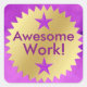 Stickers qui sont réservés pour le travail étudiant le plus génial! Ces stickers exquis sont dotés d'un arrière - plan d'aquarelle royal violet et d'un "label or d'approbation" spécial pour un travail étudiant remarquable! Parfait pour reconnaître le travail exceptionnel des élèves, l'atteinte des objectifs, l'amélioration du travail/de l'effort ou l'excellent comportement.